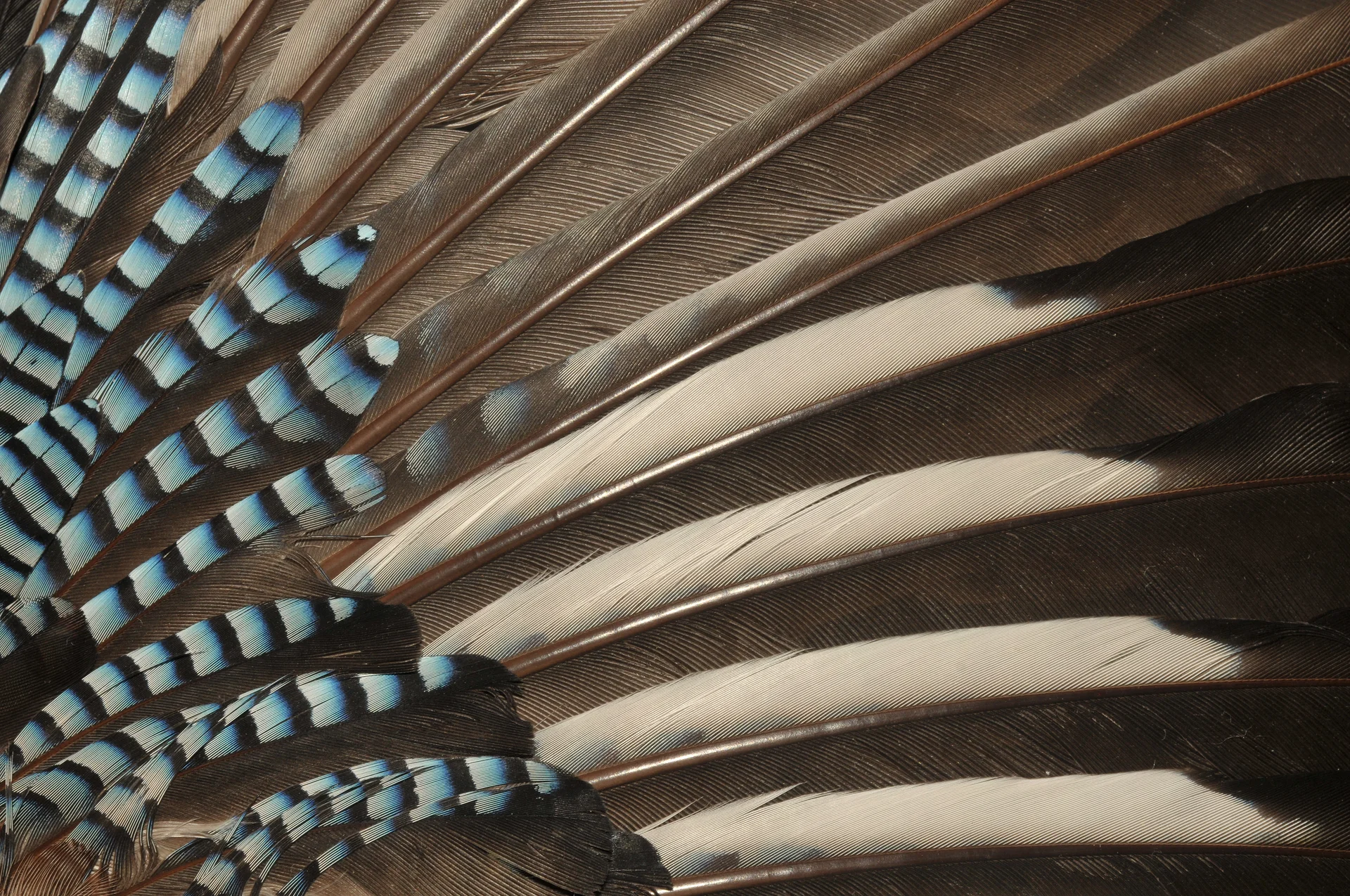 - large bande alaire bleue barrée de noir et blanc (rémiges secondaires)