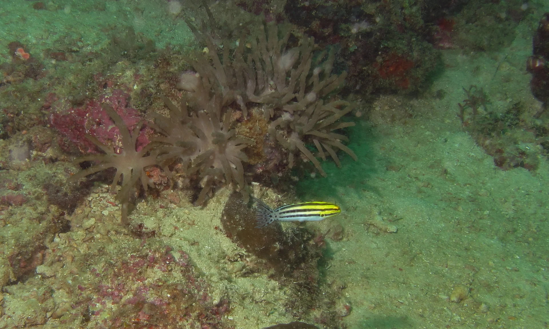 Profondeur typique 1–20 m. Espèce observée se perchant sur structures récifales mais se déplaçant aussi en pleine eau pour se nourrir. Coloration aposematique présente chez certaines populations.