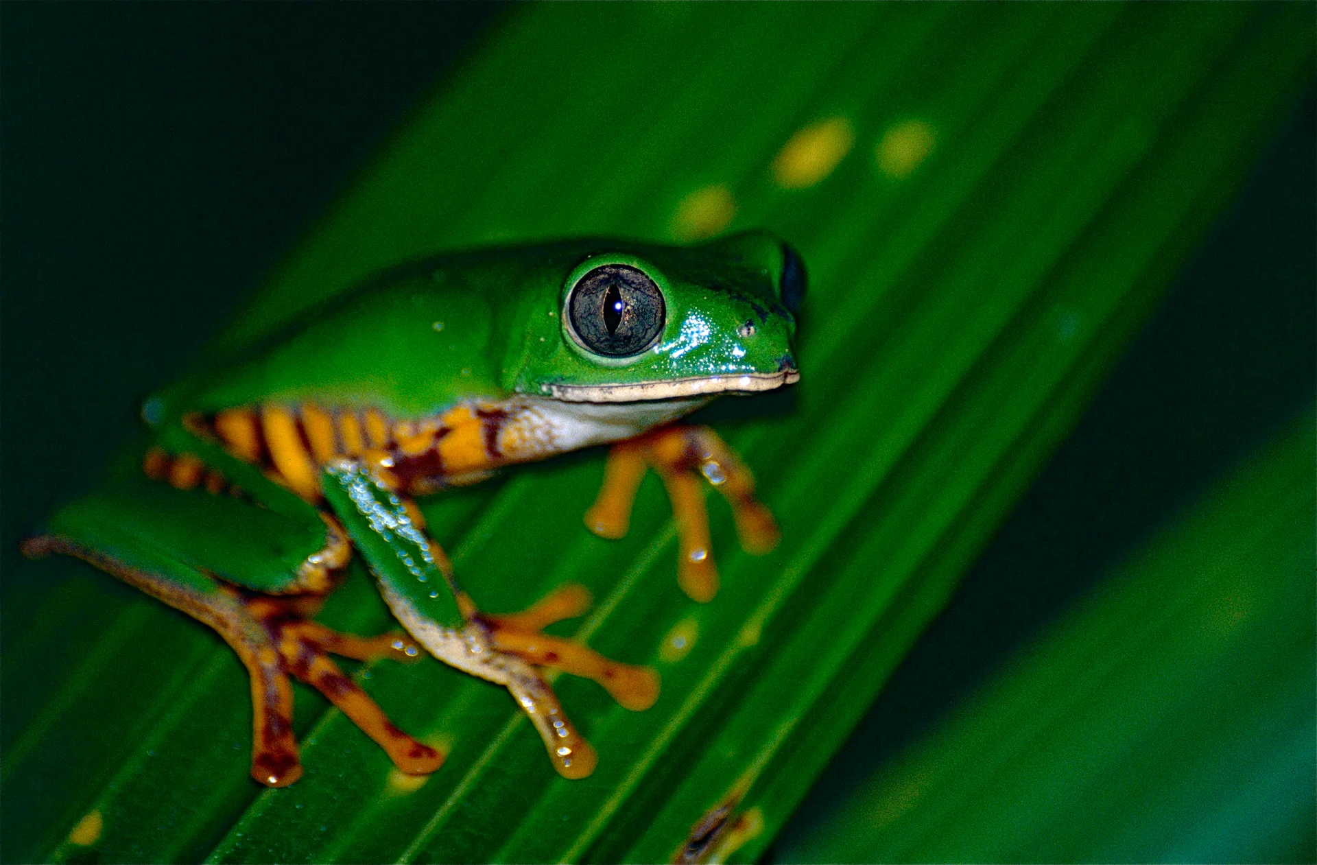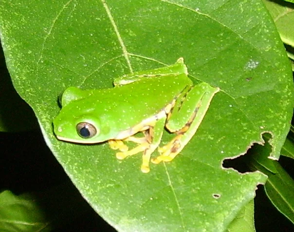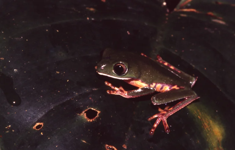 - Peau lisse et humide, typique des anoures arboricoles tropicaux