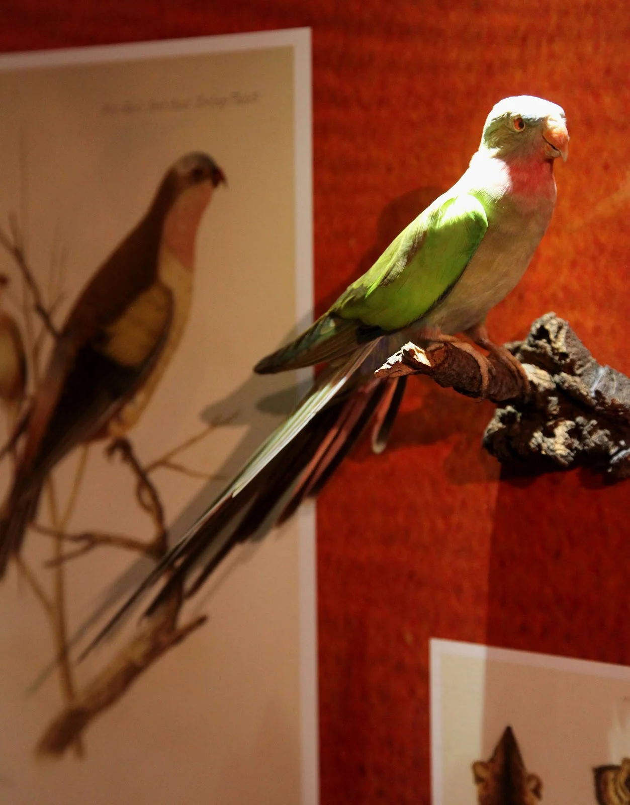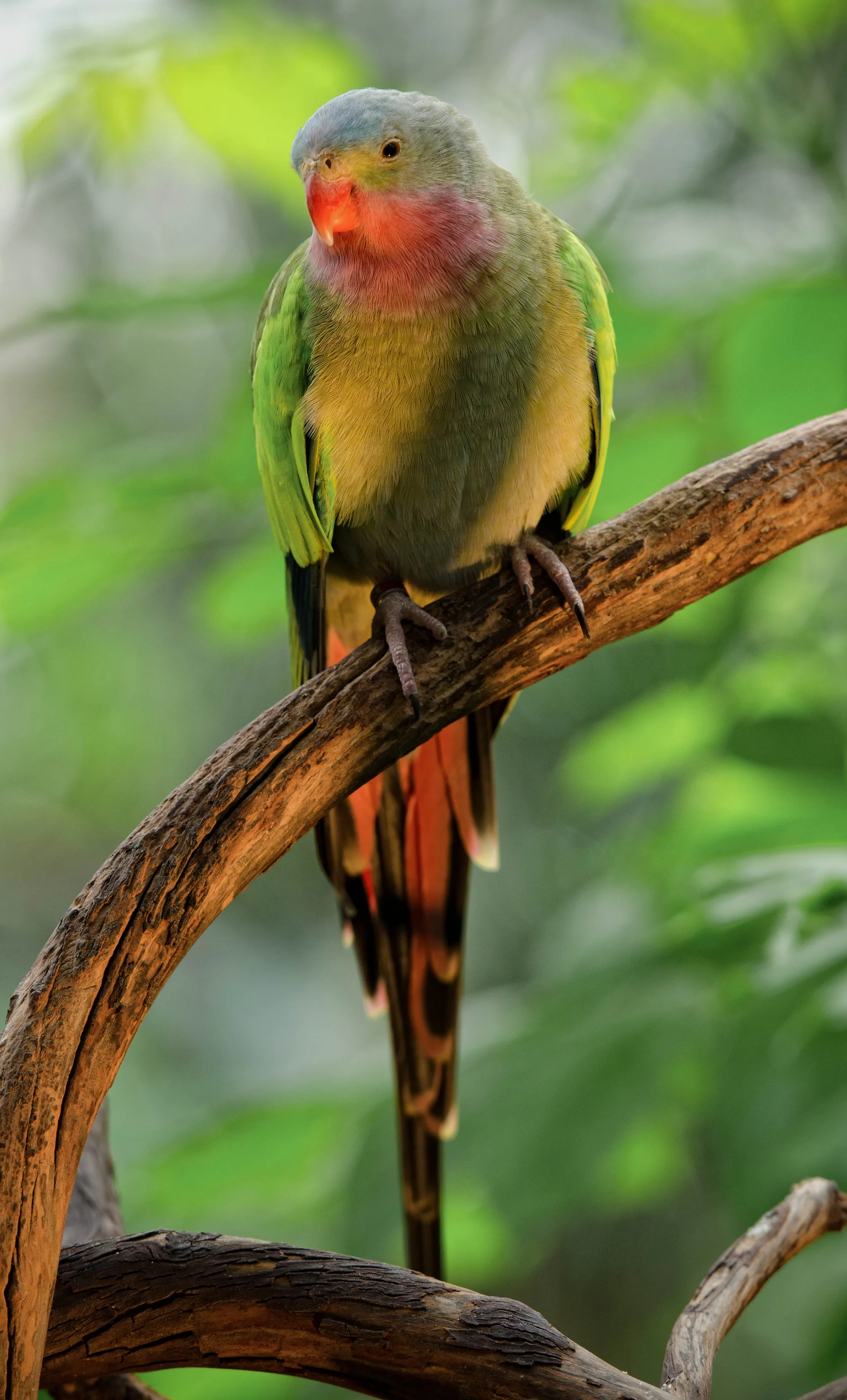 - plumage vert avec gorge rose