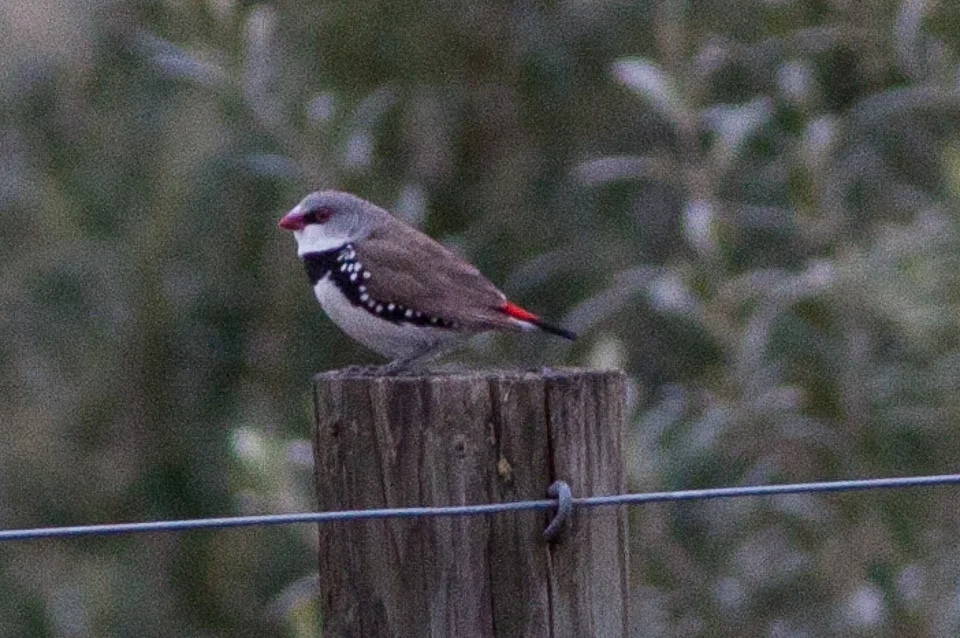 Sources : https://datazone.birdlife.org/species/factsheet/22719660, https://datazone.birdlife.org/species/factsheet/diamond-firetail-stagonopleura-guttata/distribution, https://www.environment.nsw.gov.au/Topics/Animals-and-plants/Threatened-species/NSW-Threatened-Species-Scientific-Committee/Determinations/Final-determinations/2000-2003/Diamond-Firetail-Stagonopleura-guttata-vulnerable-species-listing, https://www.act.gov.au/environment/animals-and-plants/act-threatened-species/diamond-firetail-stagonopleura-guttata, https://ebird.org/gbbc/species/diafir1/, https://animaldiversity.org/accounts/Stagonopleura_guttata/, https://www.australianfinchsociety.co.uk/diamond.htm, https://www.nfss.org/species/finches/australian/diamond-firetail/, https://www.singing-wings-aviary.com/diamond-firetails.htm, https://www.hawkesburyfinchclub.com/diamond-firetailed-finch, https://www.wwbirds.co.za/dir/diamond-firetail-finches/, https://en.pet.wiki/wiki/Diamond-Firetail-Stagonopleura-guttata, https://eol.org/pages/1050497/maps, https://commons.wikimedia.org/w/index.php?curid=9428258, https://commons.wikimedia.org/w/index.php?curid=18561819, https://commons.wikimedia.org/w/index.php?curid=61917495, https://commons.wikimedia.org/w/index.php?curid=63586792, https://commons.wikimedia.org/w/index.php?curid=63747259, https://commons.wikimedia.org/w/index.php?curid=63747330, https://commons.wikimedia.org/w/index.php?curid=63747347, https://commons.wikimedia.org/w/index.php?curid=83889252, https://commons.wikimedia.org/w/index.php?curid=83889326, https://commons.wikimedia.org/w/index.php?curid=106209968