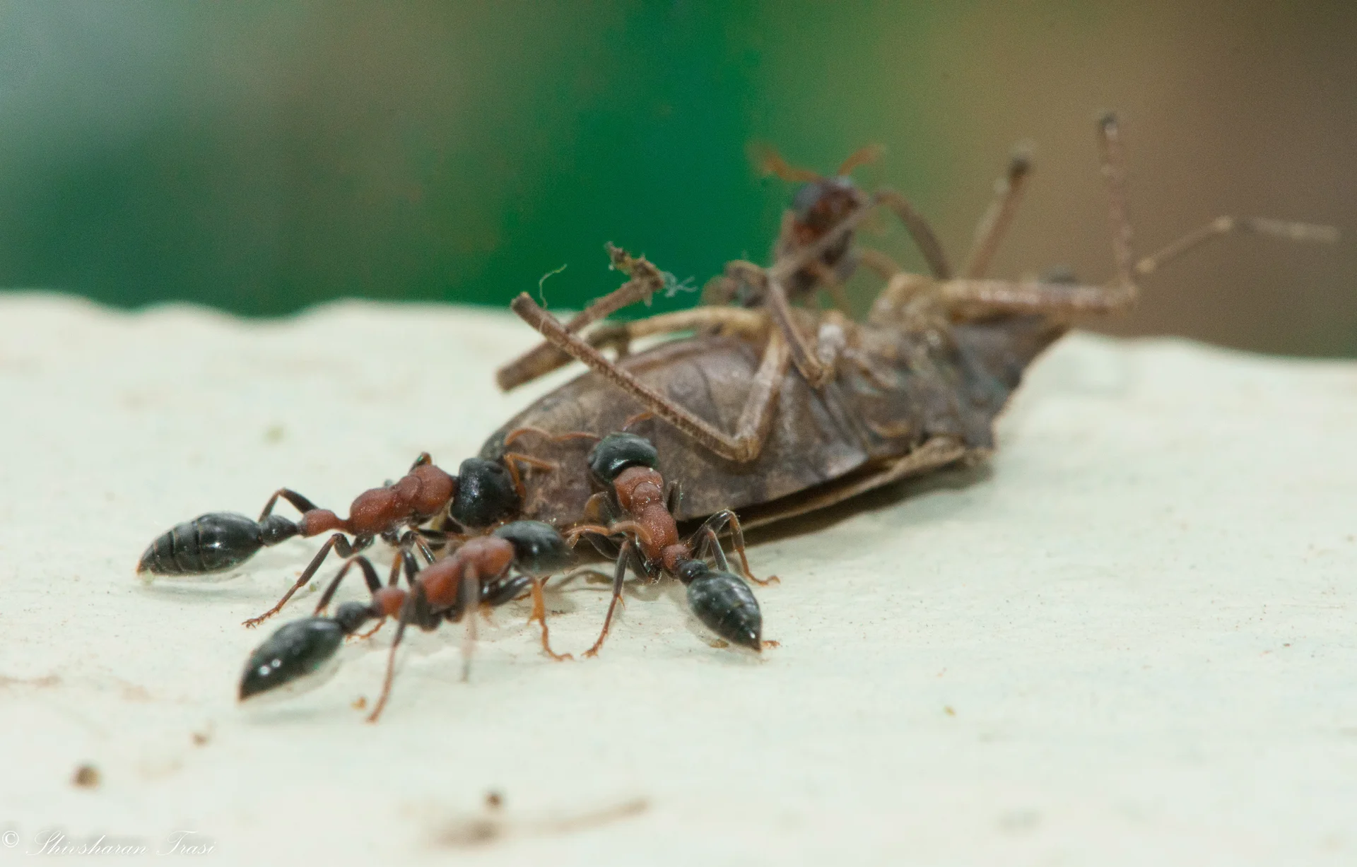 - Pas de soldat, pas de dimorphisme ouvrière/reine marqué (reine légèrement plus grosse, mais toutes noires et oranges)