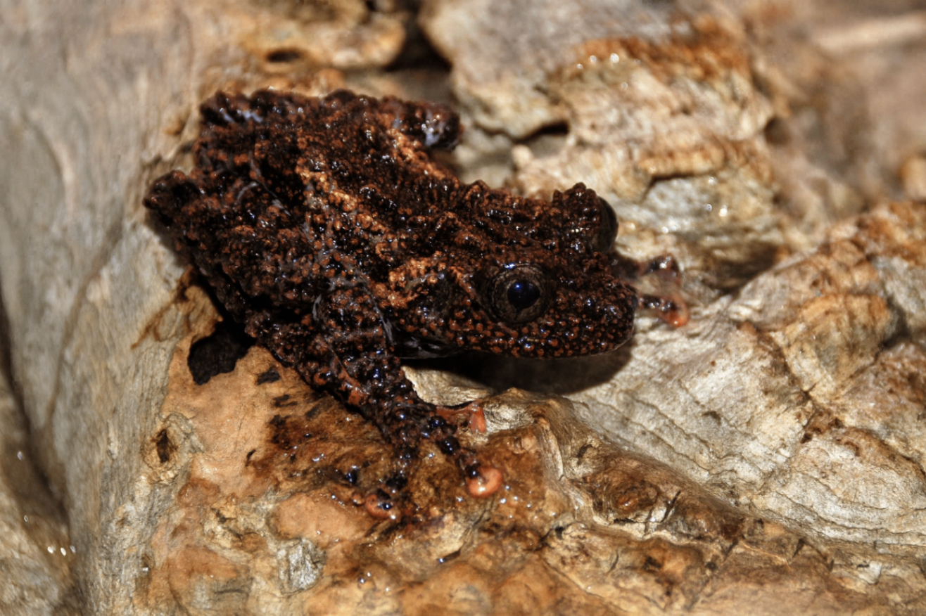 - Peau rugueuse, recouverte de tubercules, mimant la mousse ou les lichens